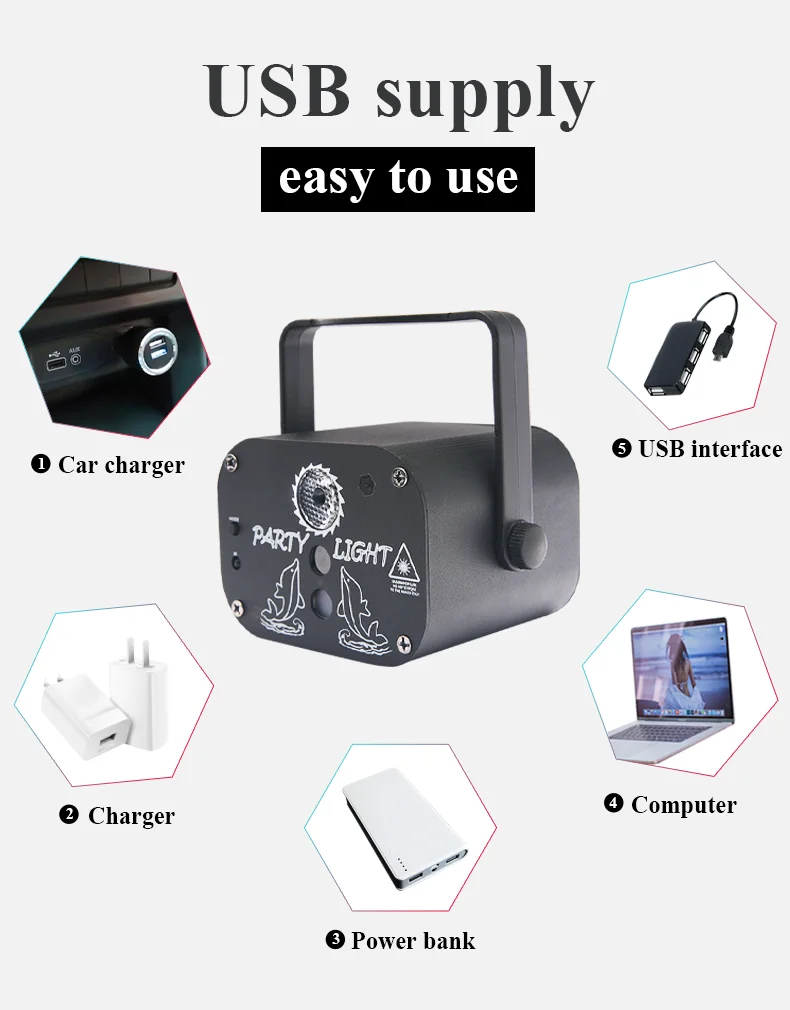 Create an immersive party atmosphere with this USB rechargeable laser projector featuring 60 dynamic patterns, sound activation, and remote control. Perfect for parties, weddings, holidays, and special events.