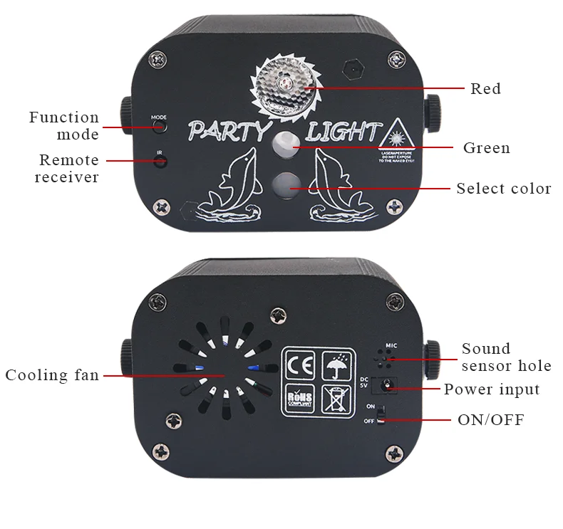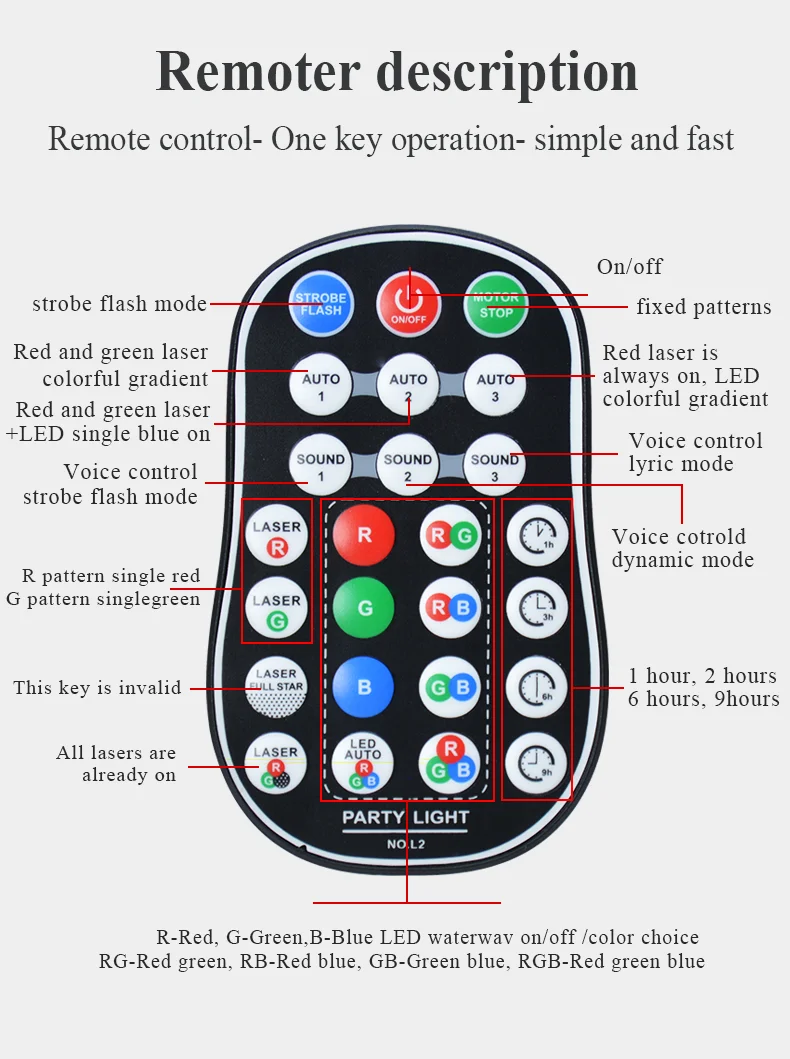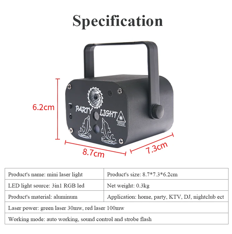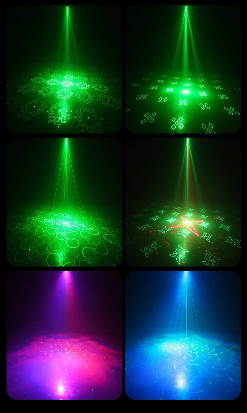 - 60 Pattern Projections: Multiple lighting effects with red and green lasers plus RGB LED